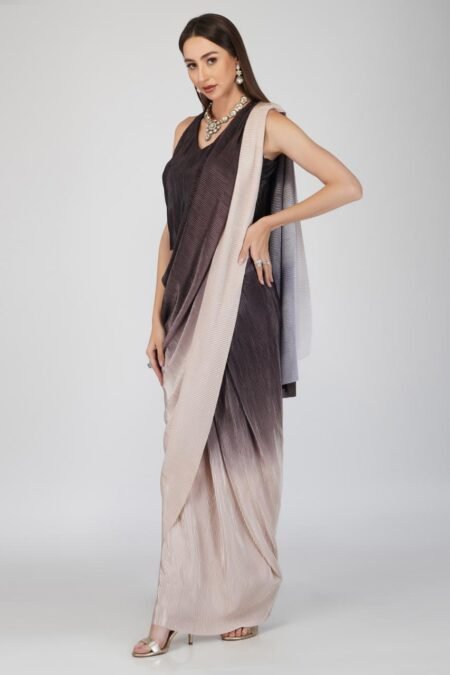 Fabric : Pleated Silk Color / Print : Beige Designer : Charu Chhatwal SKU: Rg 166b
