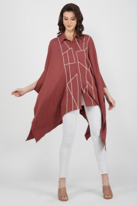 Salmon pink Crepe kaftan top with collars and button down style and geometric cord detailing.