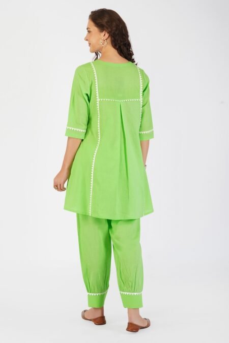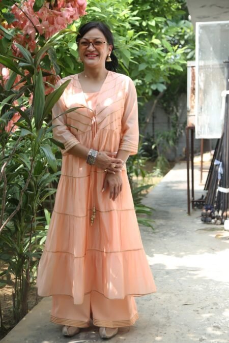 Black satin kurta with a sleeveless embroidered overlay with geometric emb teamed with pleated pants 3 pc set
