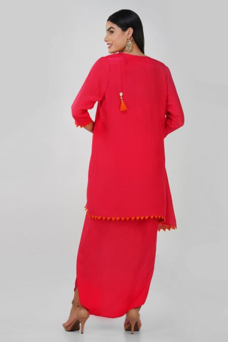 Black Vellour co ord set with hand embroidered floral motif with gold cords and teamed with straight loose pants.