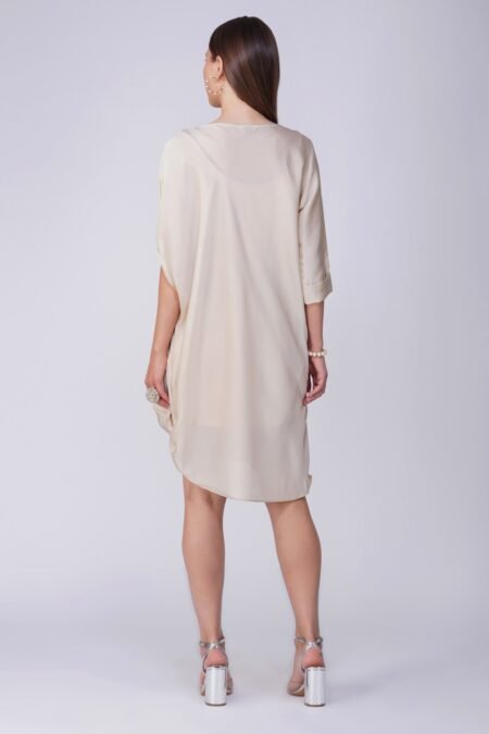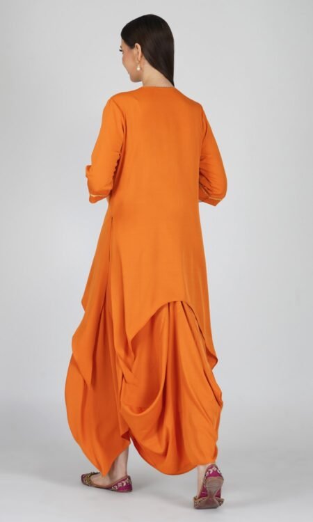 Floor length crepe cowl dress with a sleeveless georgette overlay embellished with gotta Patti embroidery